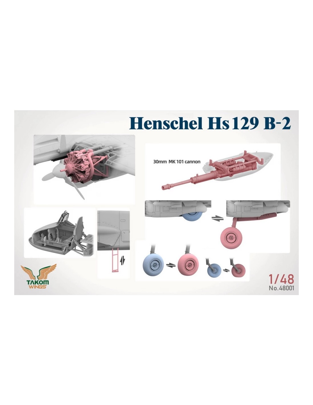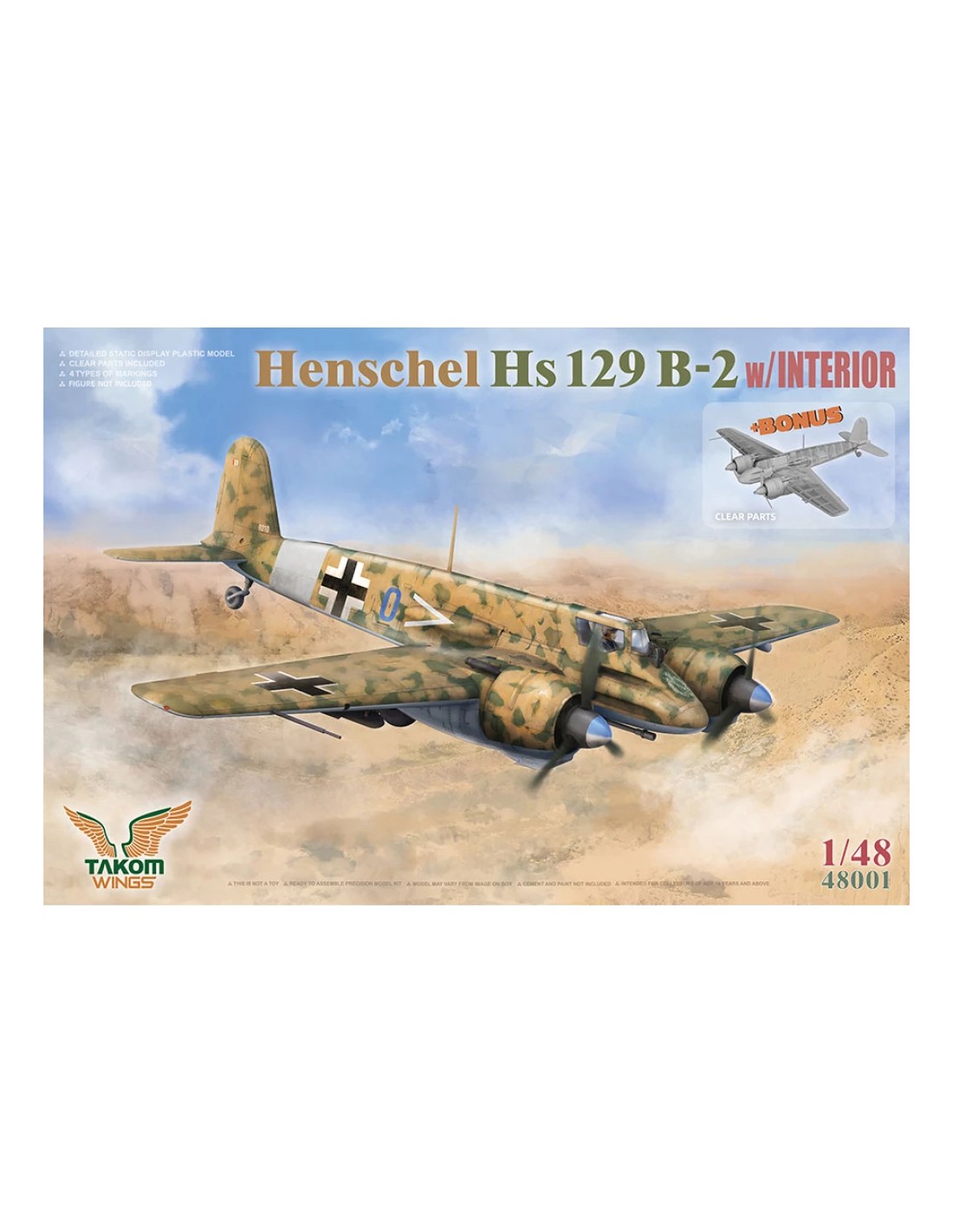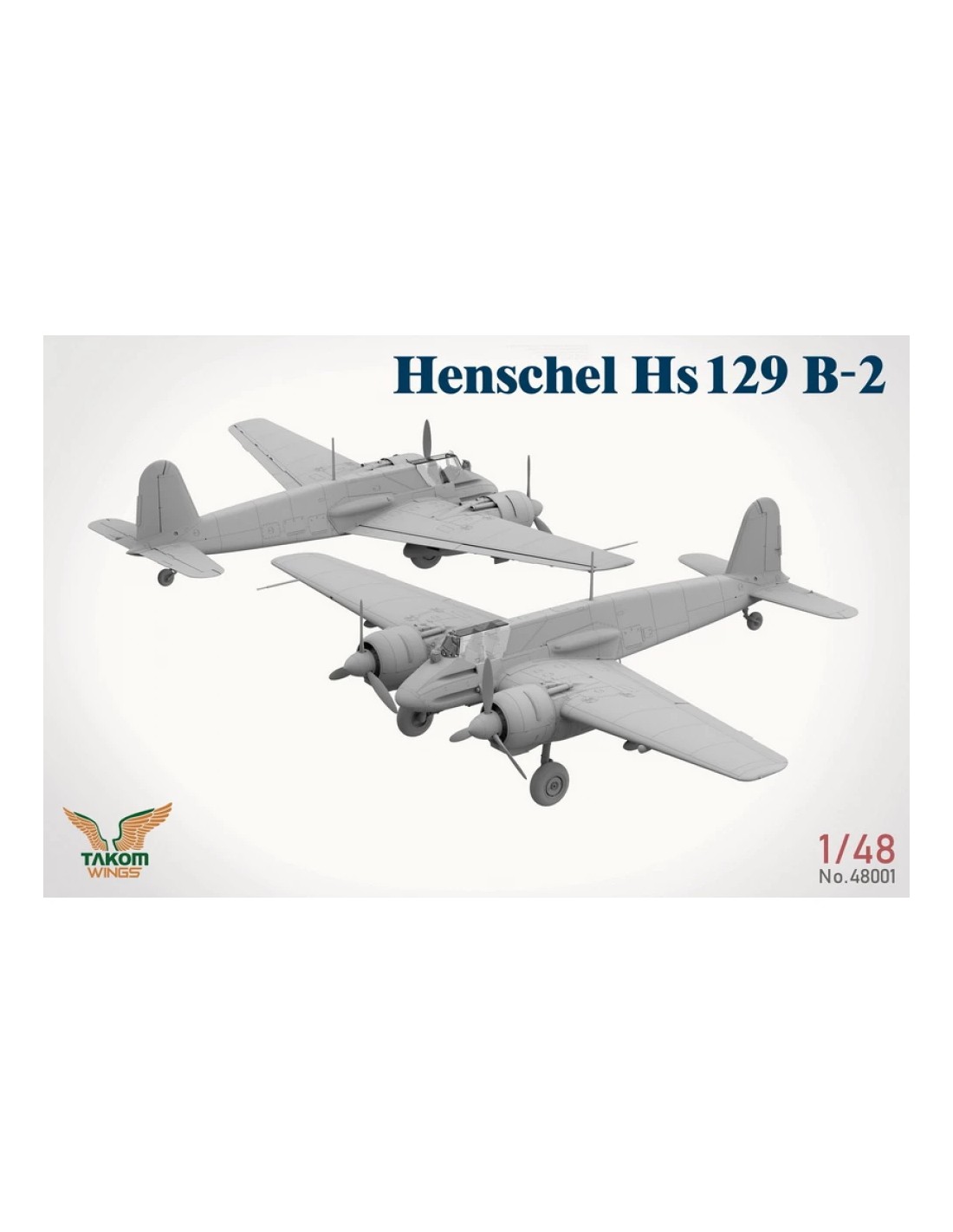 El Henschel Hs129 es un avión de ataque alemán, bimotor, monoplaza, totalmente metálico, con un diseño de ala baja y una cola clásica de la Segunda Guerra Mundial. El vuelo del prototipo tuvo lugar el 25 de mayo de 1939, la producción en serie comenzó en 1940, pero entró en servicio en 1942. En total, se construyeron 865 piezas de este exitoso avión. El Hs129 fue diseñado como un avión de apoyo en tierra, así como un avión diseñado para destruir vehículos blindados enemigos. El concepto general era similar al Il2M3 o al Junkers Ju87G. Por lo tanto, el avión estaba muy fuertemente armado (cañones de 20 mm a incluso 75 mm) y fuertemente blindado. Durante los combates en el frente oriental, el Hs.129, junto con el Ju-87G, fue el principal "avión antitanque" de la Luftwaffe, que demostró ser muy eficaz. Su única, pero significativa desventaja, era la falta de armas defensivas efectivas. Se crearon tres versiones de desarrollo: A, B y C, siendo las más importantes las dos primeras. La versión A estaba propulsada por dos motores en línea Argus As-410A-0 con 430 KM cada uno, mientras que la versión B usaba dos motores radiales Gnôme-Rhone 14M con 700 KM cada uno. La versión C nunca entró en producción en masa. Datos técnicos (versión Hs129B): longitud: 9,75 m, envergadura: 14,2 m, altura: 3,25 m, velocidad máxima: 407 km/h, velocidad de ascenso: 8,1 m/s, alcance máximo: 690 km, techo máximo 9000 m armamento: fijo - 2 ametralladoras MG131 de 13 mm y 2 cañones MG151/20 de 20 mm, suspendidos - hasta 300 kg de bombas.