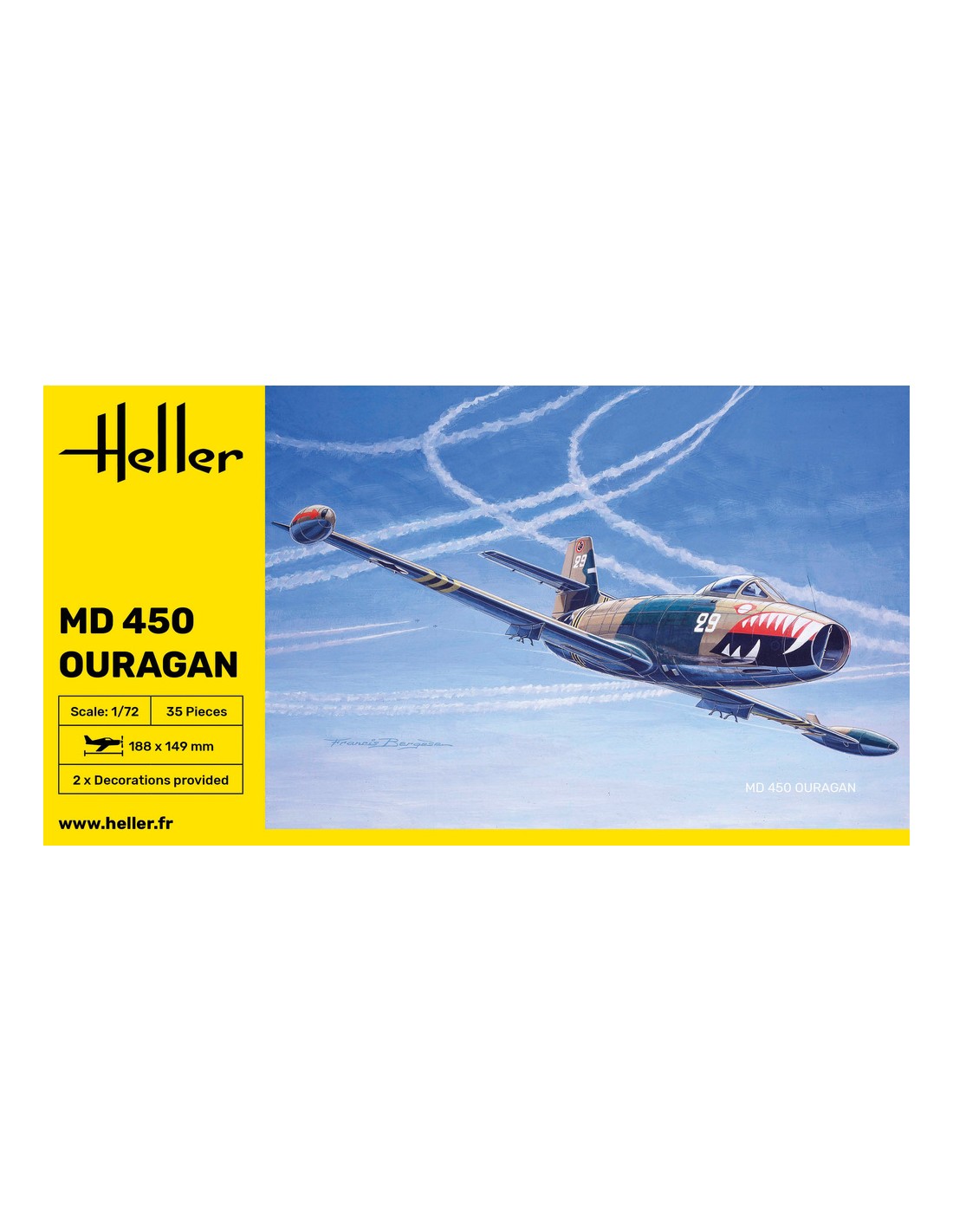 El Dassault MD 450 Ouragan era un cazabombardero francés de ala baja, de medio caparazón y totalmente metálico. La impulsión fue proporcionada por un solo motor Rolls-Royce Nene 104B. El vuelo del prototipo tuvo lugar en febrero de 1949 y la producción en serie continuó en 1949-1954, finalizando con la producción de 118 máquinas. Los aviones fueron dados de baja en la década de 1980.
