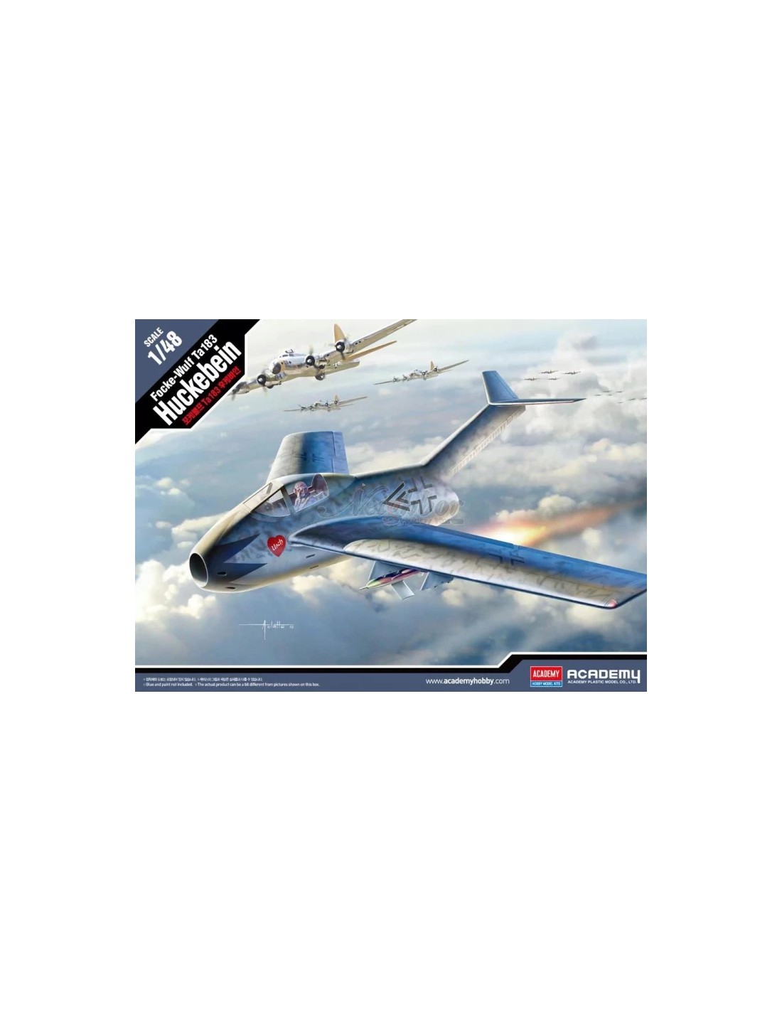 El Focke Wulf Ta183A "Huckebein" es un caza a reacción alemán con estructura mixta de metal y madera, en disposición de ala media con alas inclinadas de finales de la Segunda Guerra Mundial. El contrato para su producción se firmó en febrero de 1945 y el primer avión debía estar listo en septiembre del mismo año. El fin de las hostilidades frustró estos planes. Además, ninguno de los prototipos estaba completamente terminado. En la versión en serie, se planeó que la unidad sería un motor a reacción Heinkel Hirth HeS 011A. El Ta-183 también debía usar no solo armas fijas a bordo, sino también misiles aire-aire guiados X-4 o Hs-298. Después de la guerra, el Ta-183 se convirtió en la inspiración para el Mig-15 y tuvo una fuerte influencia en los diseñadores del avión sueco SAAB 29 Tunnan. Datos técnicos (teóricos): longitud: 9,2 m, envergadura: 10 m, altura: 3,86 m, velocidad máxima: 955 km/h, velocidad de ascenso: 20,4 m/s, techo máximo 14000 m, armamento: fijo-4 cañones MK108 cal 30 mm, suspendido - hasta 500 kg de carga.
