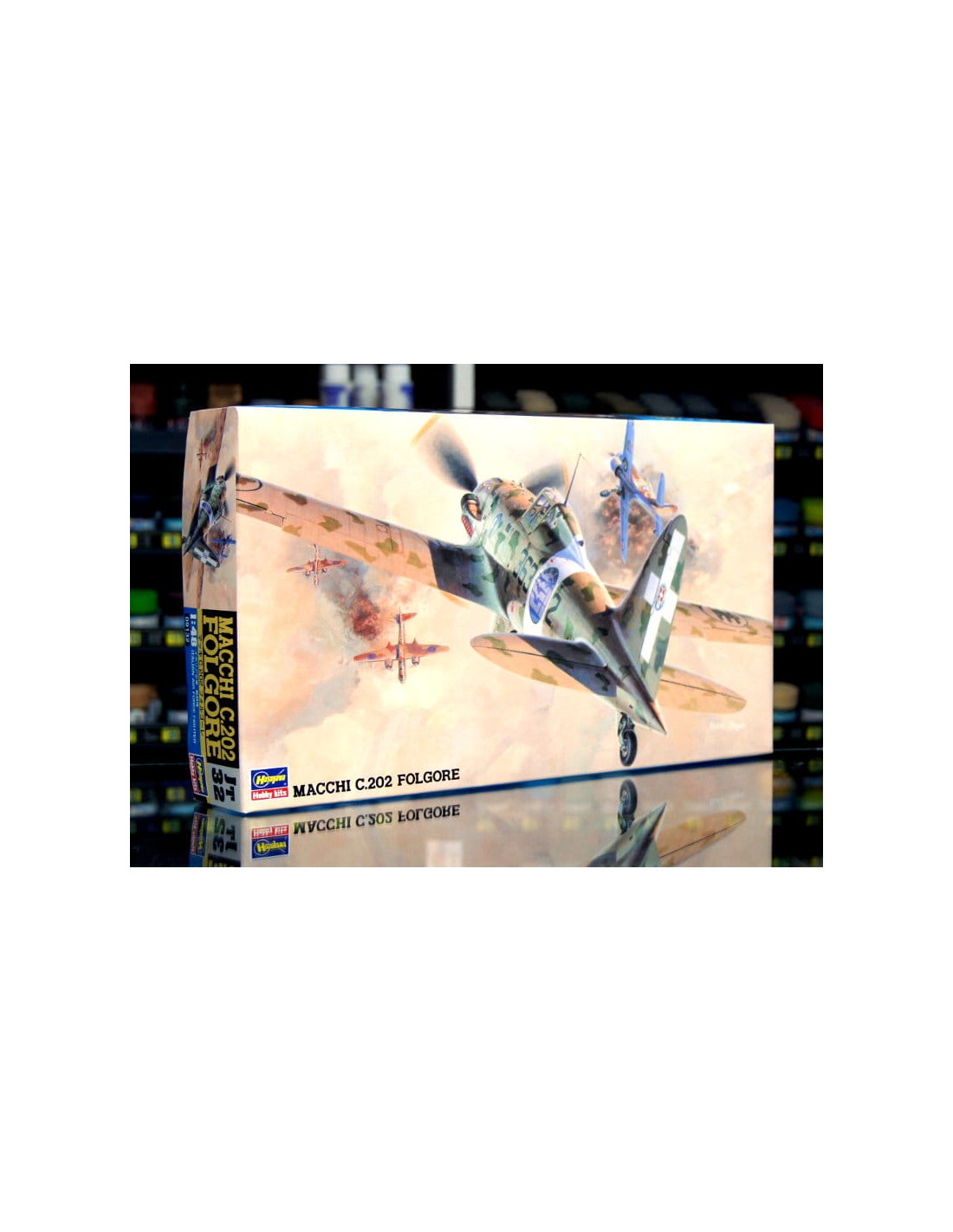 El Macchi MC 202 es un avión de combate monoplaza italiano con estructura metálica, en configuración de ala baja con cola clásica de la Segunda Guerra Mundial. La unidad de accionamiento era el motor Alfa Romeo RA1000 RC41-1 Monsone con una capacidad de 1175 KM, que es una versión de licencia del motor alemán DB-601A. Los aviones Macchi formaron la columna vertebral de la aviación de combate de la Italia fascista. Lucharon por Grecia, el norte de África y Rusia. La historia del caza MC 200 Saetta y su sucesor MC 202 Folgore comenzó en 1935, cuando un equipo de diseñadores dirigido por el Ing. Marco Castoldiego comenzó el trabajo conceptual de un nuevo y moderno avión de combate con un tren de aterrizaje retráctil, una hélice en vuelo y una cabina cubierta. El proyecto denominado C (Castoldi) 200 se completó el mismo año. Bajo la influencia de los requisitos de la especificación del Ministerio dell'Aeronautico presentados en la primavera del año siguiente, el diseño se modificó aumentando el número de armas, aumentando el rango de vuelo e introduciendo correcciones para mejorar los parámetros de ascenso y maniobrabilidad. La producción en masa comenzó en el otoño de 1938 y se completó 4 años después, después de la producción de un total de 1153 fuselajes, en agosto de 1942. Datos técnicos: longitud: 8,85 m, envergadura: 10,58 m, altura: 3,03 m, velocidad máxima: 600 km/h, velocidad de ascenso: 18 m/s, alcance máximo: 756 km, techo máximo 11000 m, armamento: fijo - 2 Breda de 12,7 mm -Ametralladoras SAFAT, 2 ametralladoras Breda-SAFAT de 7,7 mm, suspendidas - hasta 150 kg de bombas.