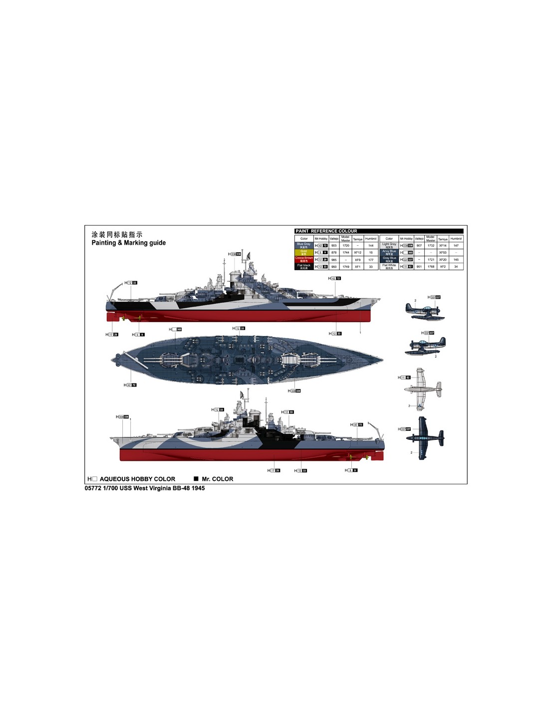 El USS West Virginia fue el cuarto y último acorazado de la clase Colorado. Unidades de este tipo pertenecían a los llamados acorazados estándar, es decir, barcos con valores de combate, dimensiones y capacidades similares, aunque divididos en diferentes clases, que entraron en servicio con la Marina de los EE. UU. en el período 1916-1923. Los acorazados de la clase Colorado, en comparación con sus predecesores, habían cambiado principalmente por completo las armas principales y fueron los primeros en la historia de la Marina estadounidense en utilizar artillería de calibre 406 mm. Los proyectó como un equilibrio para los acorazados japoneses de la clase Nagato. En general, sin embargo, en términos de construcción, blindaje y velocidad máxima, los acorazados de la clase Colorado eran similares a los acorazados de la clase Tennessee. El USS West Virginia (BB-48) estaba en la base de Pearl Harbor cuando estalló la Segunda Guerra Mundial en el Pacífico. Como consecuencia del ataque japonés, el barco sufrió daños muy graves y se hundió hasta el fondo. Sin embargo, el barco fue levantado del fondo en mayo de 1942 y se sometió a una renovación y reconstrucción de gran alcance, que incluyó, entre otros: refuerzo de armas antiaéreas, instalación de nuevos sistemas de navegación y radar, así como mejora de la resistencia al agua. . Como resultado, se creó un barco completamente nuevo. Después de las reparaciones y la modernización, el barco volvió al servicio en julio de 1944. Tomó parte muy activa en la Batalla de la Bahía de Leyte en octubre de 1944, contribuyendo significativamente al hundimiento del acorazado japonés Yamashiro. También participó en las operaciones en Iwo-Jima y Okinawa, apoyando a los marines estadounidenses con fuego de artillería. El USS West Virginia (BB-48) fue dado de baja en 1947 y vendido como chatarra en 1959.