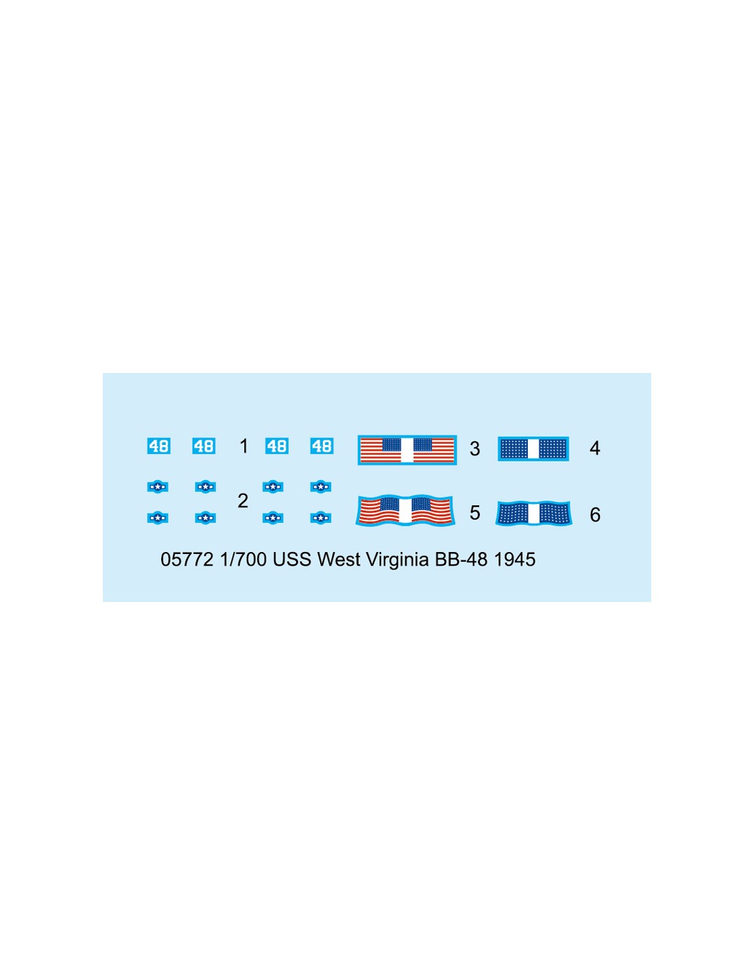 El USS West Virginia (BB-48) fue un acorazado estadounidense establecido en 1920, botado en noviembre de 1921 y comisionado en la Marina de los EE. UU. en 1923. La eslora del barco era de 190 m, la anchura de 29,7 my el desplazamiento total, en el momento de la botadura, de 33.500 toneladas. La velocidad máxima del acorazado USS West Virginia fue de hasta 21 nudos. El armamento principal era 8 cañones de 406 mm en cuatro torretas, dos cañones cada una, y el armamento secundario era principalmente 12 cañones de 127 mm.