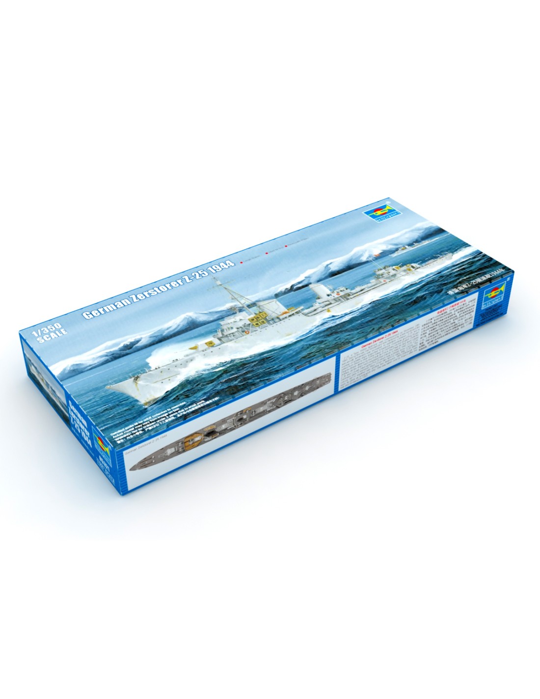 El Z25 fue un destructor alemán, cuya quilla se colocó en 1939 y se botó en marzo de 1940. El destructor ingresó al servicio de cuerdas en la Armada alemana (Kriegsmarine alemana) en noviembre de 1940. El barco tenía 127 metros de largo, 12 metros de ancho y tenía un desplazamiento total de 3.600 toneladas. ¡La velocidad máxima del destructor Z25 era de 36 nudos! El armamento principal en el momento del lanzamiento era 5 cañones de 150 mm en dos torretas gemelas y una sola, y el armamento secundario era: 4 cañones de 37 mm, 5 cañones de 20 mm y 8 tubos lanzatorpedos y minas de 533 mm.