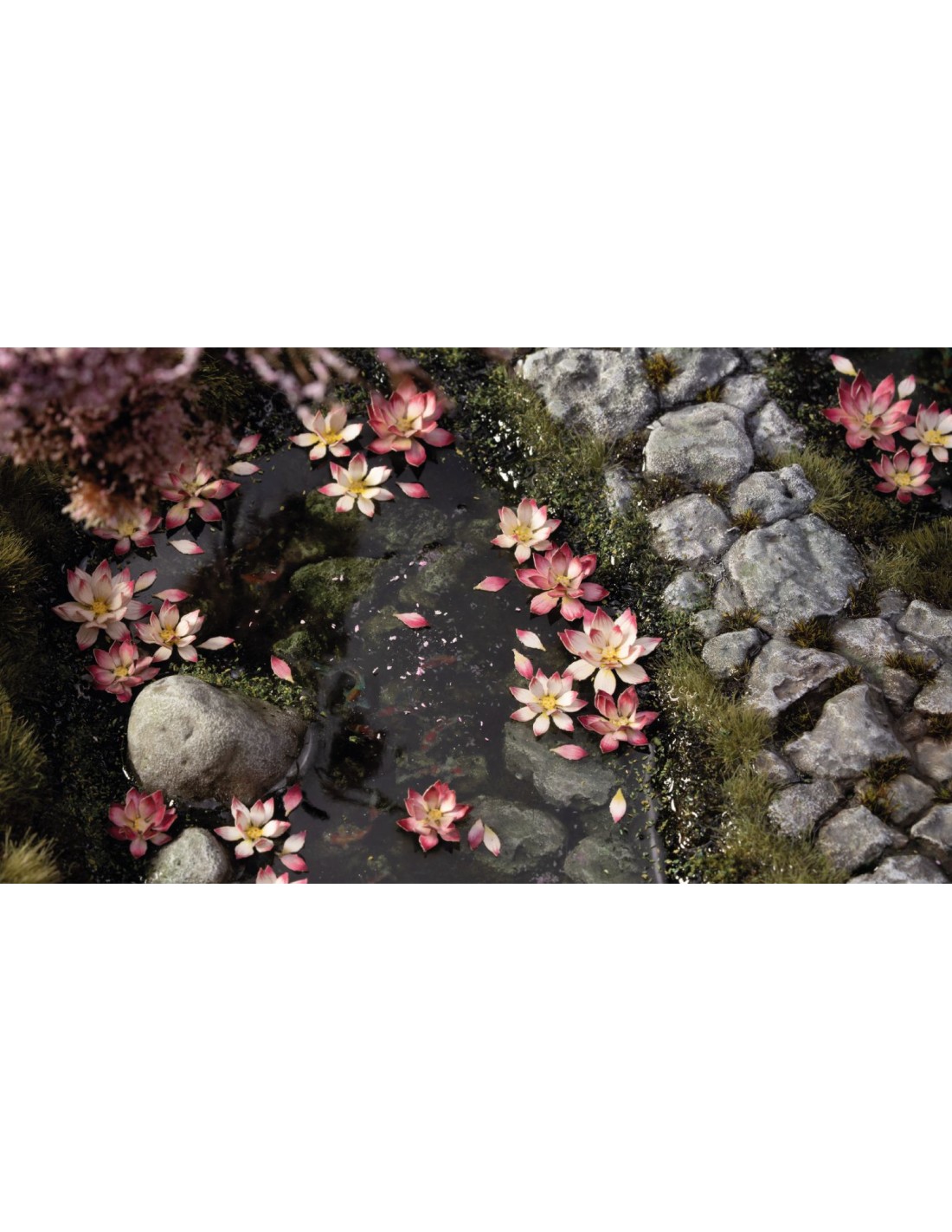 Esta hoja contiene 42 grupos de pétalos de flor de loto de diferentes colores y tamaños para sus modelos a escala, figuras de hobby y dioramas escénicos.