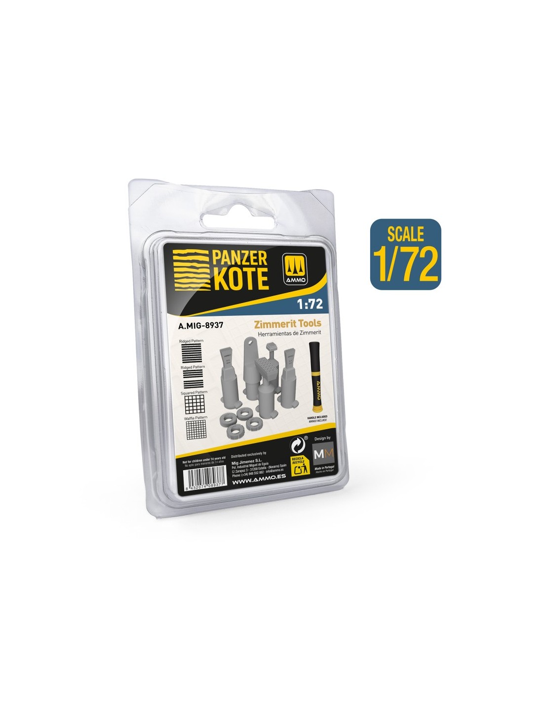 Estas herramientas especializadas permiten replicar con fidelidad las distintivas texturas del Zimmerit en maquetas de vehículos blindados alemanes a escala 1/72.