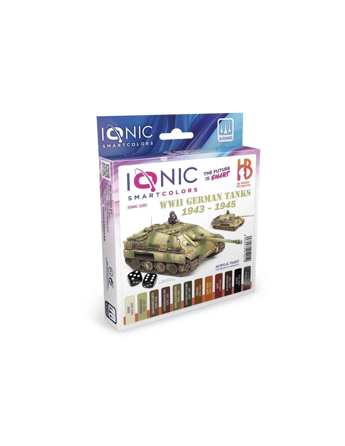 El set Ionic de tanques alemanes (1943-1945) incluye 12 colores acrílicos, especialmente diseñados para ofrecer los tonos esenciales para pintar vehículos alemanes de esta época.