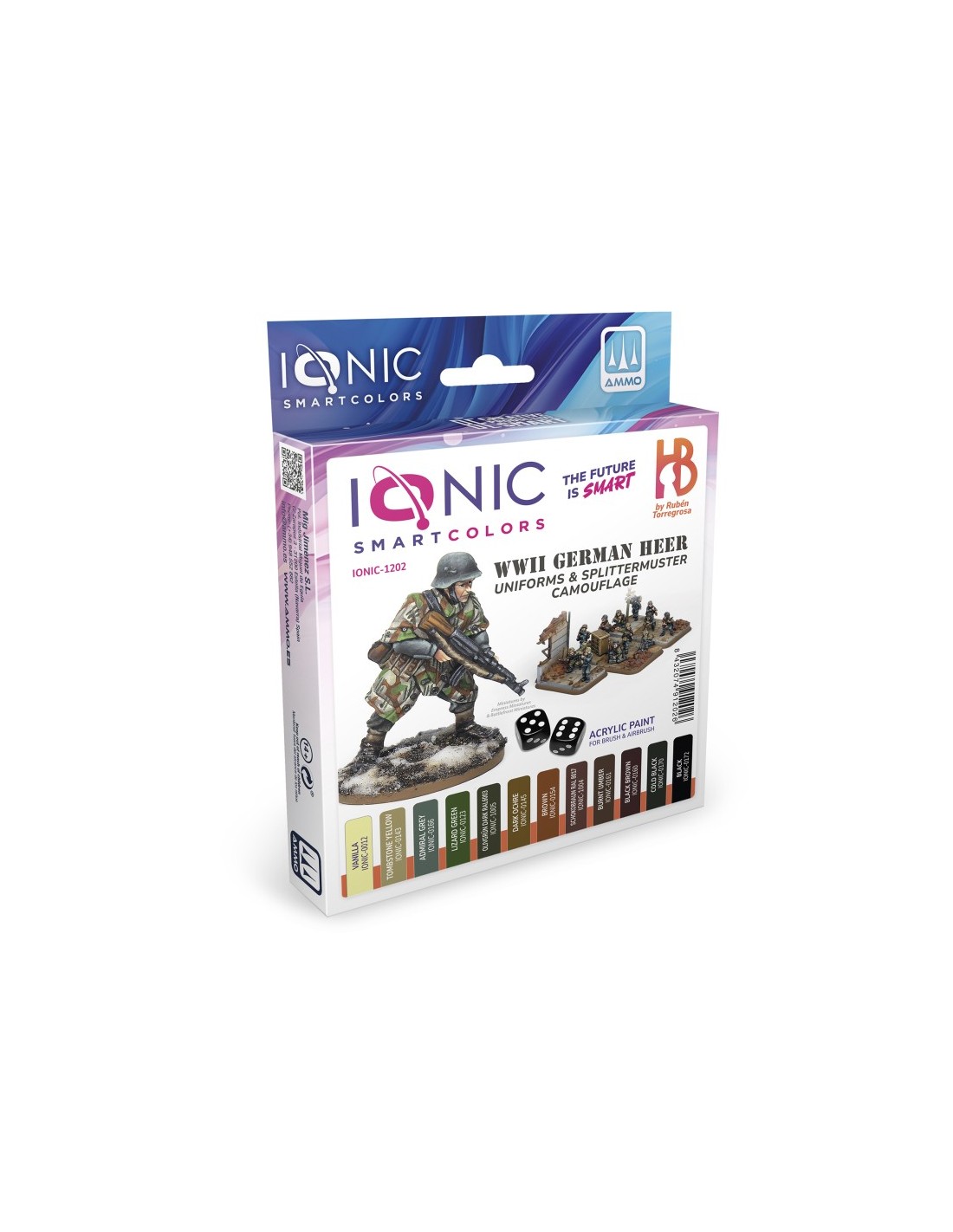 El set Ionic de uniforme Alemán (1943-1945) incluye 6 colores acrílicos, especialmente diseñados para ofrecer los tonos esenciales para pintar miniaturas de esta temática y época.