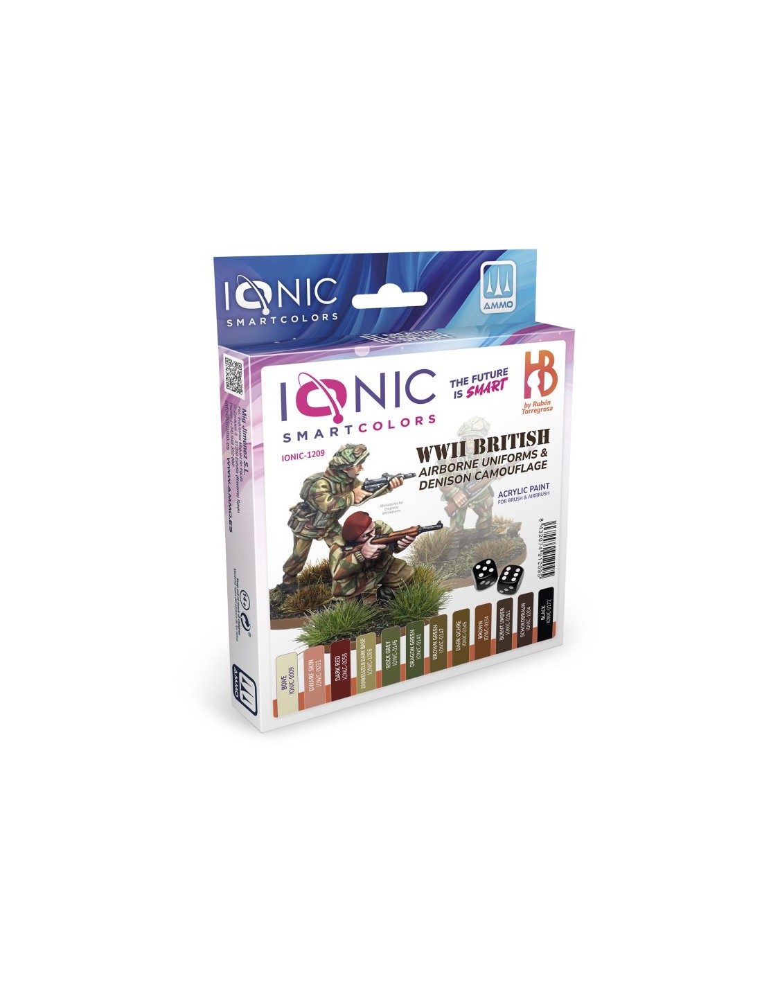 El set Ionic Smart Colors de Camuflajes del Ejército Británico de la Segunda Guerra Mundial incluye 12 colores acrílicos, especialmente diseñados para pintar este tipo de uniformes históricos.