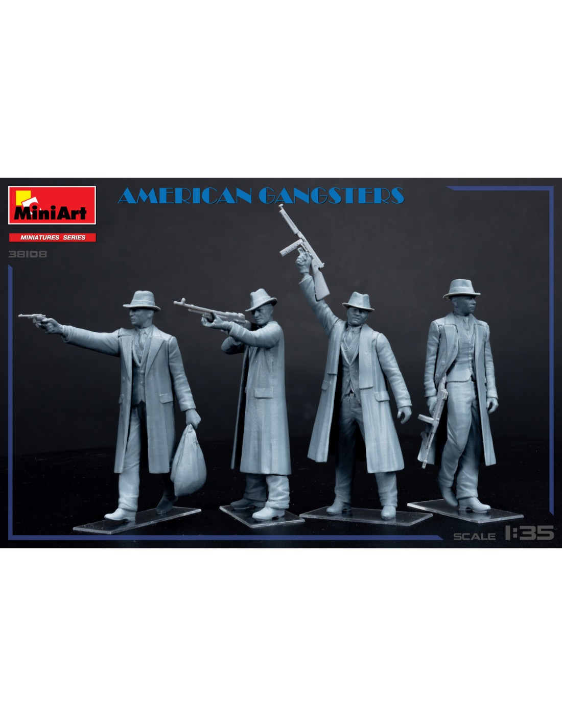 Highly detailed figures portraying 1930s American gangsters in iconic poses. A great addition for dioramas, urban scenes, or stand-alone displays