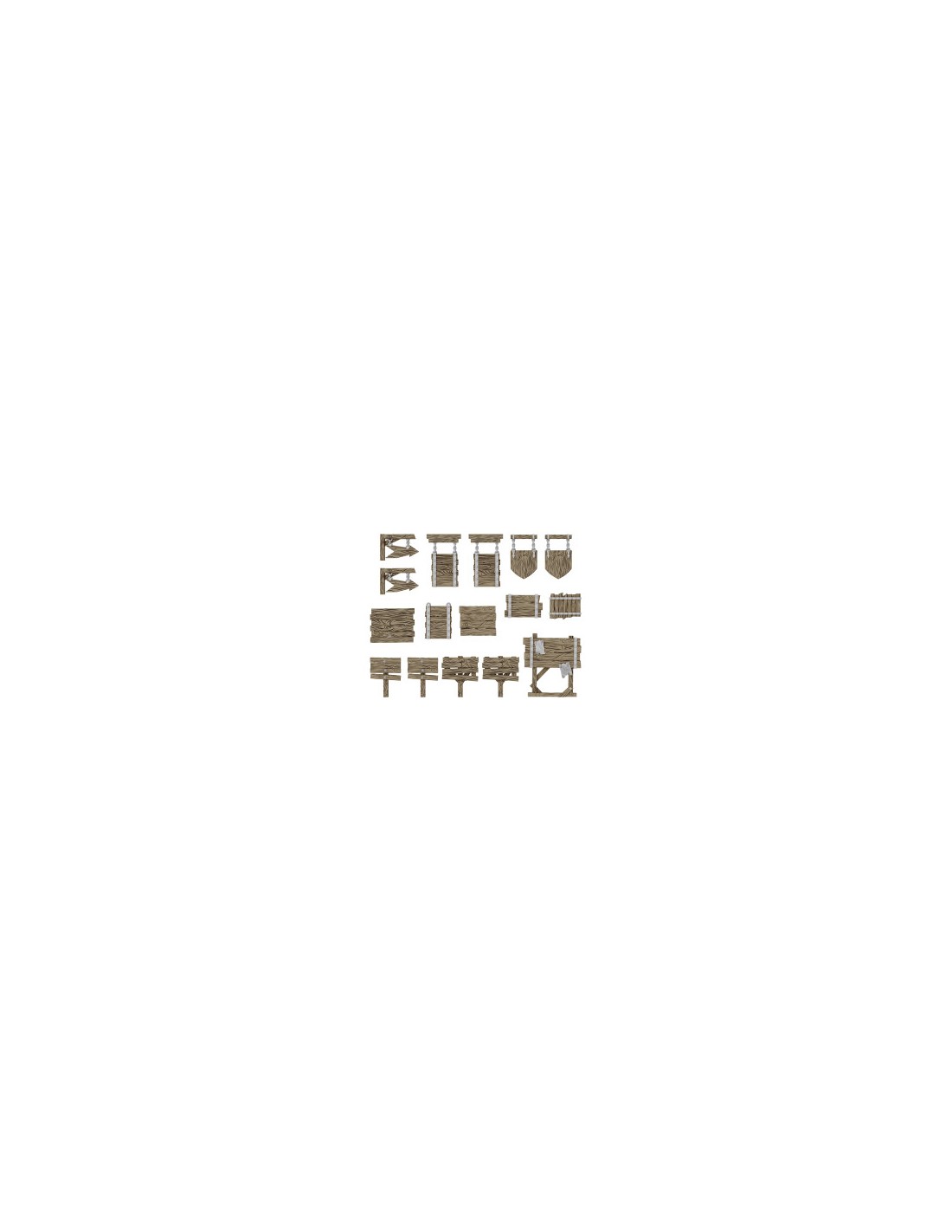 El estilo rústico de estas piezas encaja y lo hace perfectamente compatible con el oscuro universo de Trench Crusade®, así como con otras ambientaciones similares de wargames, como Warhammer Fantasy® y Warhammer The Old World®. Son ideales para decorar trincheras, caminos, pueblos abandonados, fortalezas en ruinas o campamentos militares.