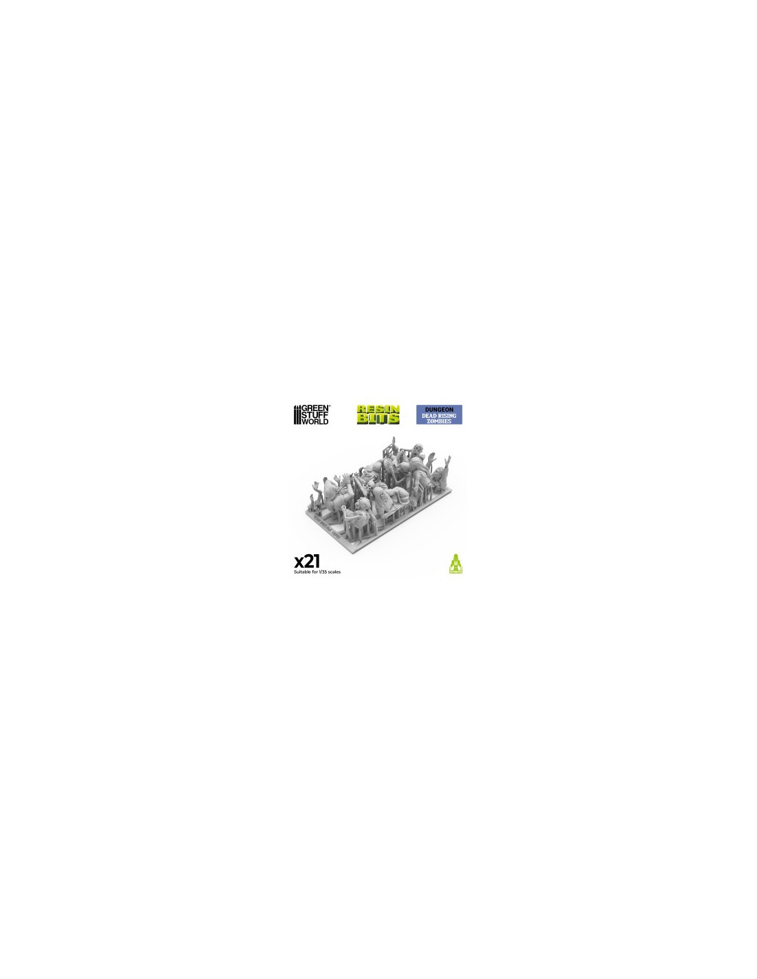 El set se entrega en resina sin pintar, listo para personalizar con tus propias técnicas de modelismo. Incluye su matriz de impresión con soportes fáciles de retirar, lo que facilita un montaje rápido y sin complicaciones. Ya sea para representar un cementerio maldito repleto de no-muertos, un campo de batalla infestado de infectados recientes o un paisaje futurista devastado por hordas zombis, este set aportará una ambientación única y escalofriante a tus creaciones.