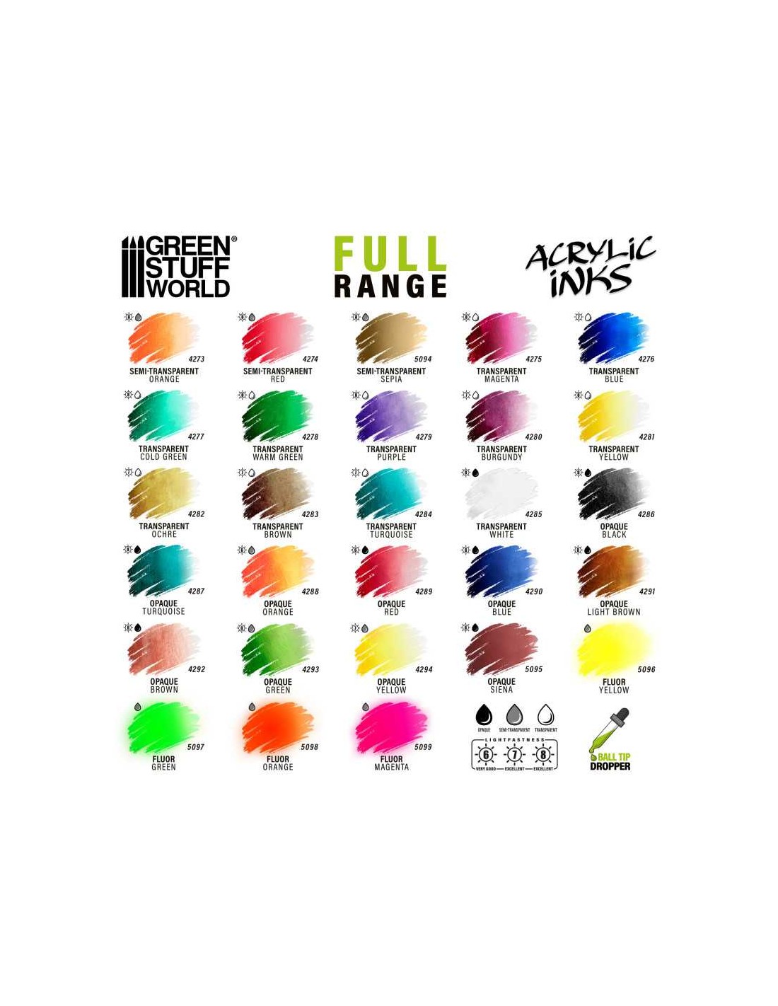 Las tintas acrílicas fluorescentes GSW destacan por su innovadora formulación, que combina pigmentos de alta calidad en una base líquida ultrafluida. Este producto se distingue por un secado rápido, permanencia, resistencia al agua una vez seco y excepcional fluidez. Estas características lo convierten en la opción ideal para una amplia gama de técnicas artísticas, como pintar maquetas de figuras o miniaturas, cómics con pincel o rotuladores rellenables y crear efectos similares a la acuarela.