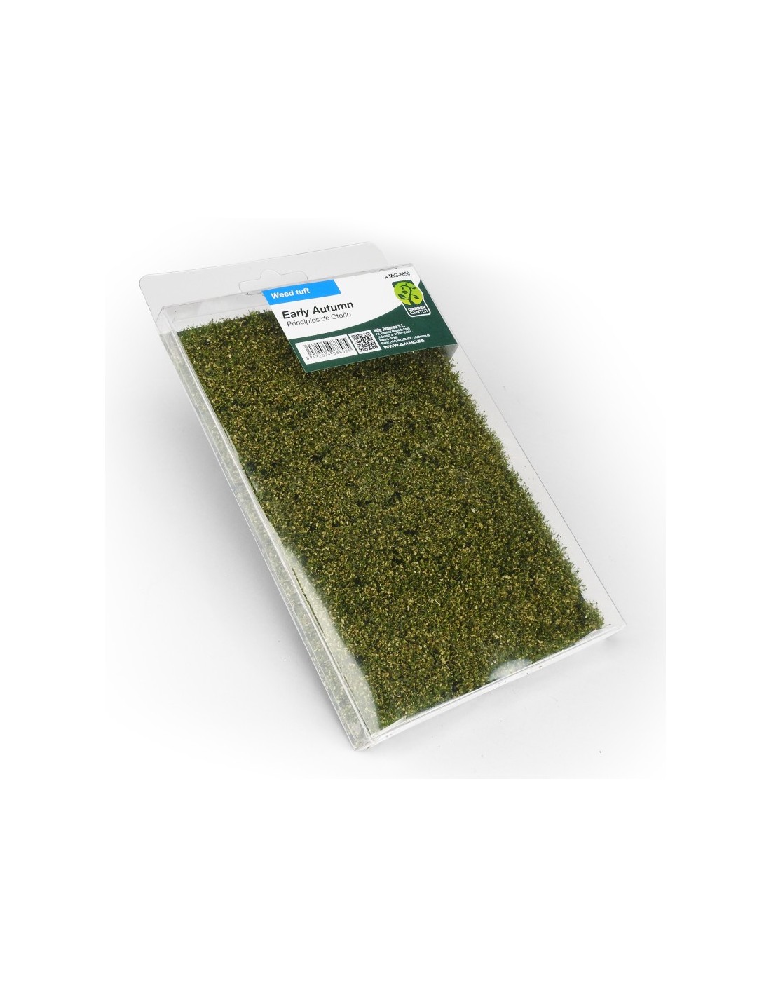 Lámina flexible que contiene cientos de matojos de vegetación estática (fibras de 6 mm de altura) cubiertos de pequeñas hojitas, ideal para representar pequeños arbustos y maleza.
