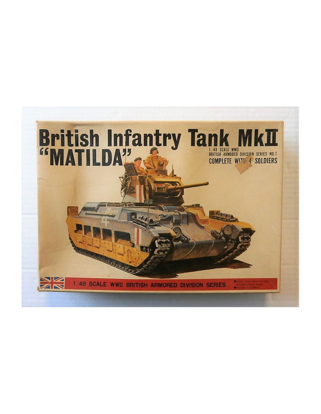 TANQUE DE INFANTERÍA BRITÁNICO MKII MATILDA. Esta edición, muy detallada y con un excelente moldeado, pertenece a la serie "Pin Point" de Bandai. Incluye tres (3) figuras de tripulación con detalles interiores y operativos completos. |