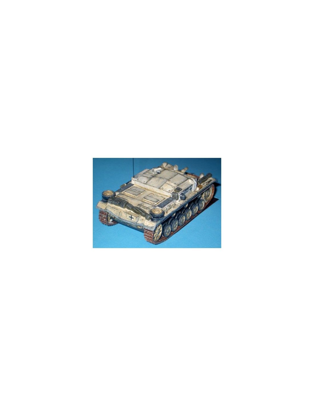 El StuG III (Sturmgeschutz III) fue un arma blindada alemana de la Segunda Guerra Mundial. Los primeros prototipos del vehículo se crearon en 1937 y la producción en serie continuó en el período 1940-1945, finalizando con la producción de unos 10.300 vehículos. El StuG III en la versión E estaba propulsado por un solo motor Maybach HL 120 TRM con 300 hp. Estaba armado (versión E) con un cañón de cañón corto de 75 mm. y 1 ametralladora MG34 calibre 7,92 mm.